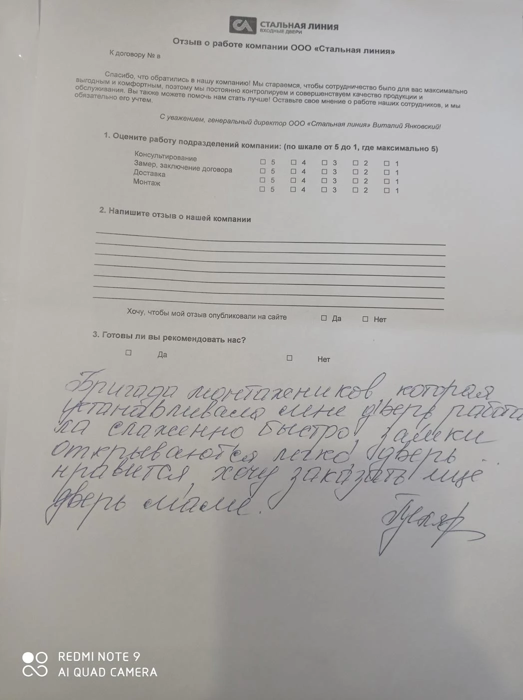Бригада монтажников, которая устанавливала мне дверь, работала слаженно, быстро, замки открываются легко, дверь нравится, хочу заказать еще дверь маме