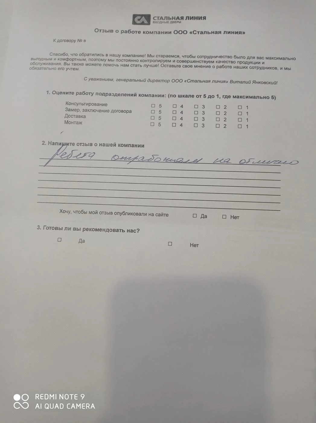 Отзыв от ИП Бадаев