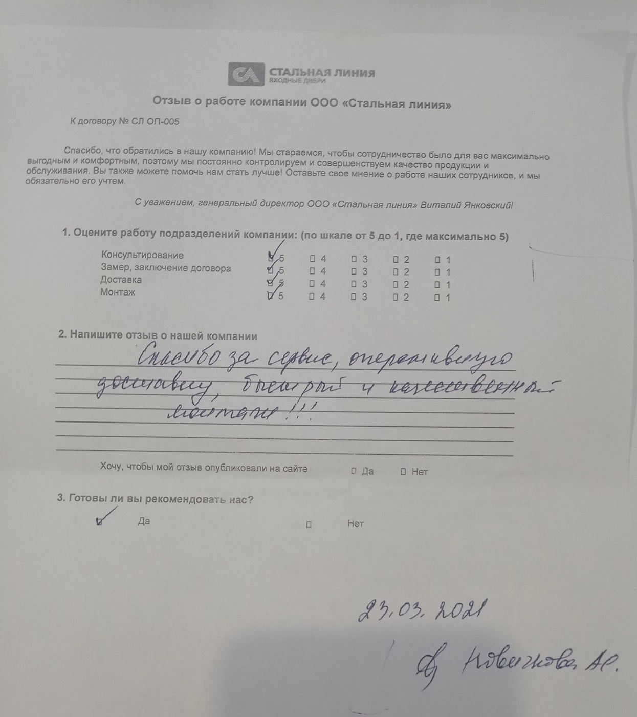 Спасибо за сервис, оперативную доставку, быстрый и качественный монтаж!!!