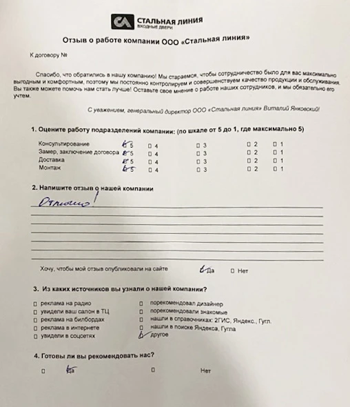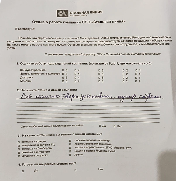 Приобретали у нас дверь? Вам всё понравилось? Оставьте отзыв!